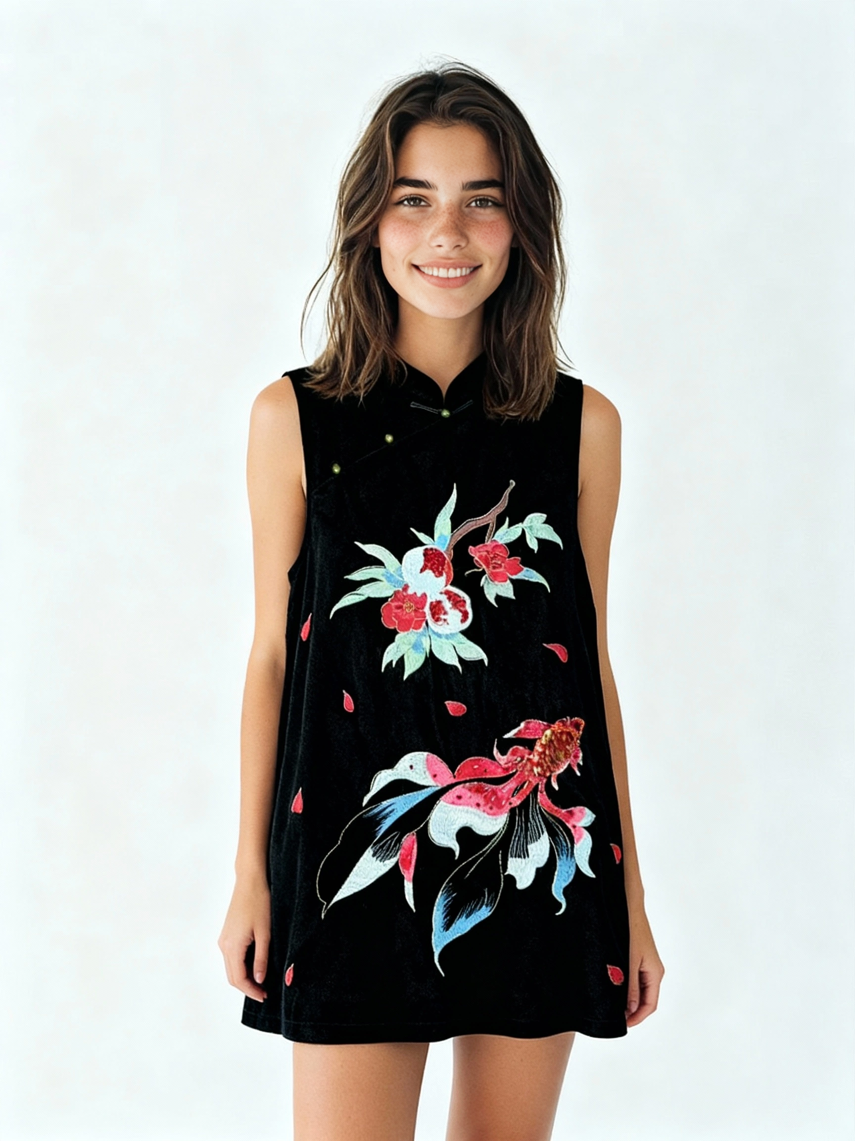 Yī nuò Velvet Embroidery Long Vest